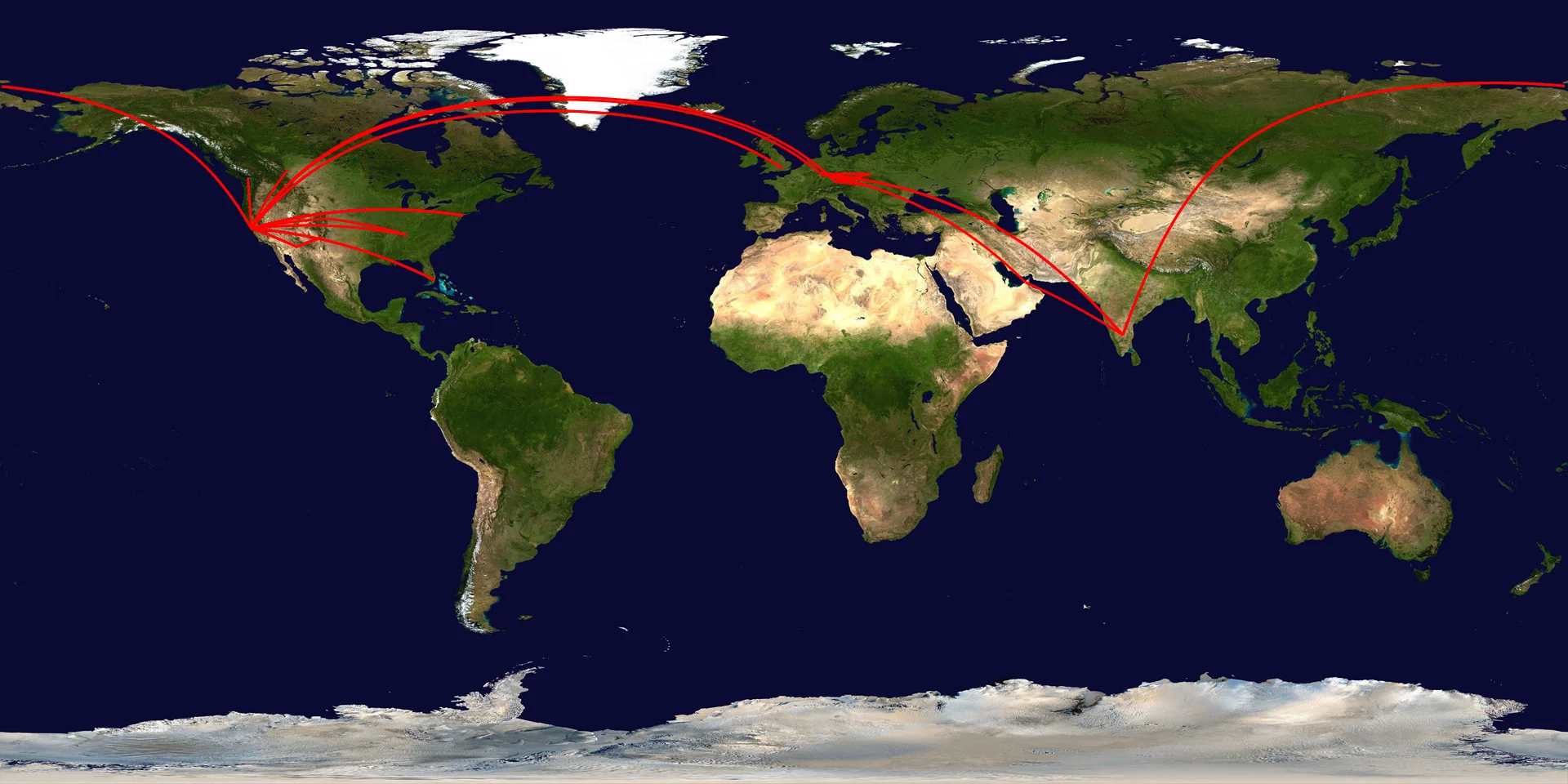 After adding flights here for a few years it seemed like a good idea to do some visualization. The image above (click for a larger version) is my current route map, updated after each flight. The routes are great circles rather than the actual track (created via the .net version of GeographicLib and this geolocation of airports). You can view individual flights here. I could probably use a carbon offset or two (unless this).