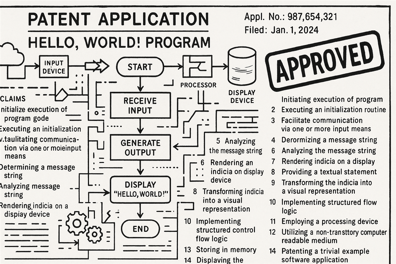Tens of thousands of dollars of billable hours result in ‘System and method for displaying a text based colloquial greeting to the populace of a planetary body’.