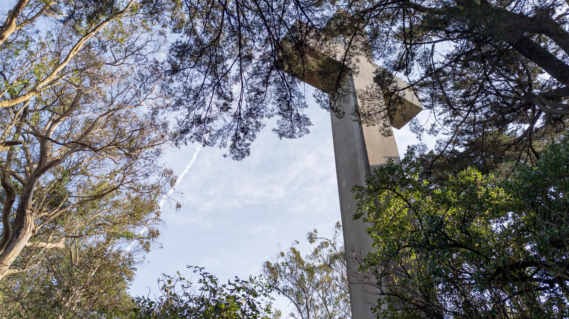 The cross at the top is a memorial to the Armenian Genocide and while most of Mount Davidson is a San Francisco park the area at the top is owned by the Council of Armenian-American Organizations of Northern California (due to a church/state separation lawsuit). It's a great spot to look (slightly) down on the Twin Peaks set who just think they've reached the top of San Francisco.