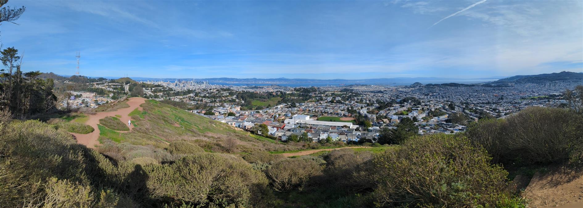 San Bruno Mountain State Park has outstanding views of San Francisco, the Pacific out to the Farallon Islands and much of the bay. We did the three mile summit loop (the wrong way round, San Bruno pros do it counter-clockwise).