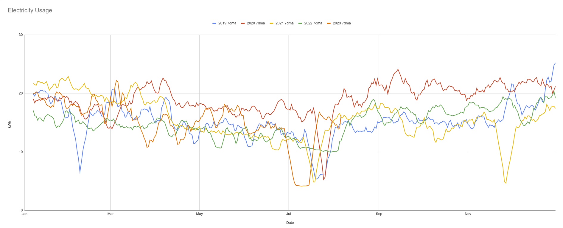 Maybe the difference is that the pandemic started around Spring when San Francisco is warm enough to not need much heating. I'll look again when I can just compare winter vs winter in a couple of months.