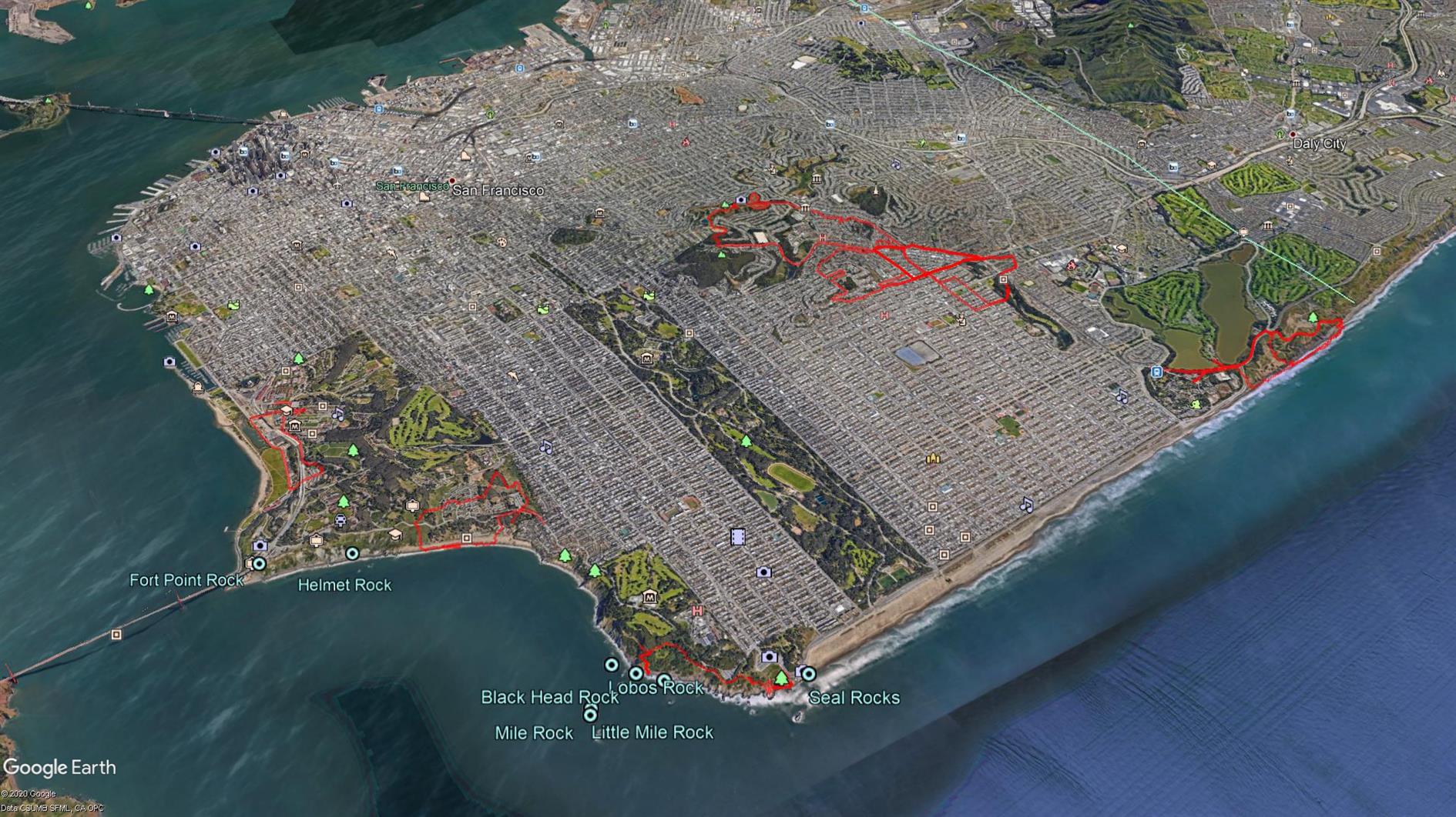 ISS over San Francisco #photo#iss#sanfrancisco 14 stacked two second exposures of the International Space Station (ISS) passing over San Francisco, California.)