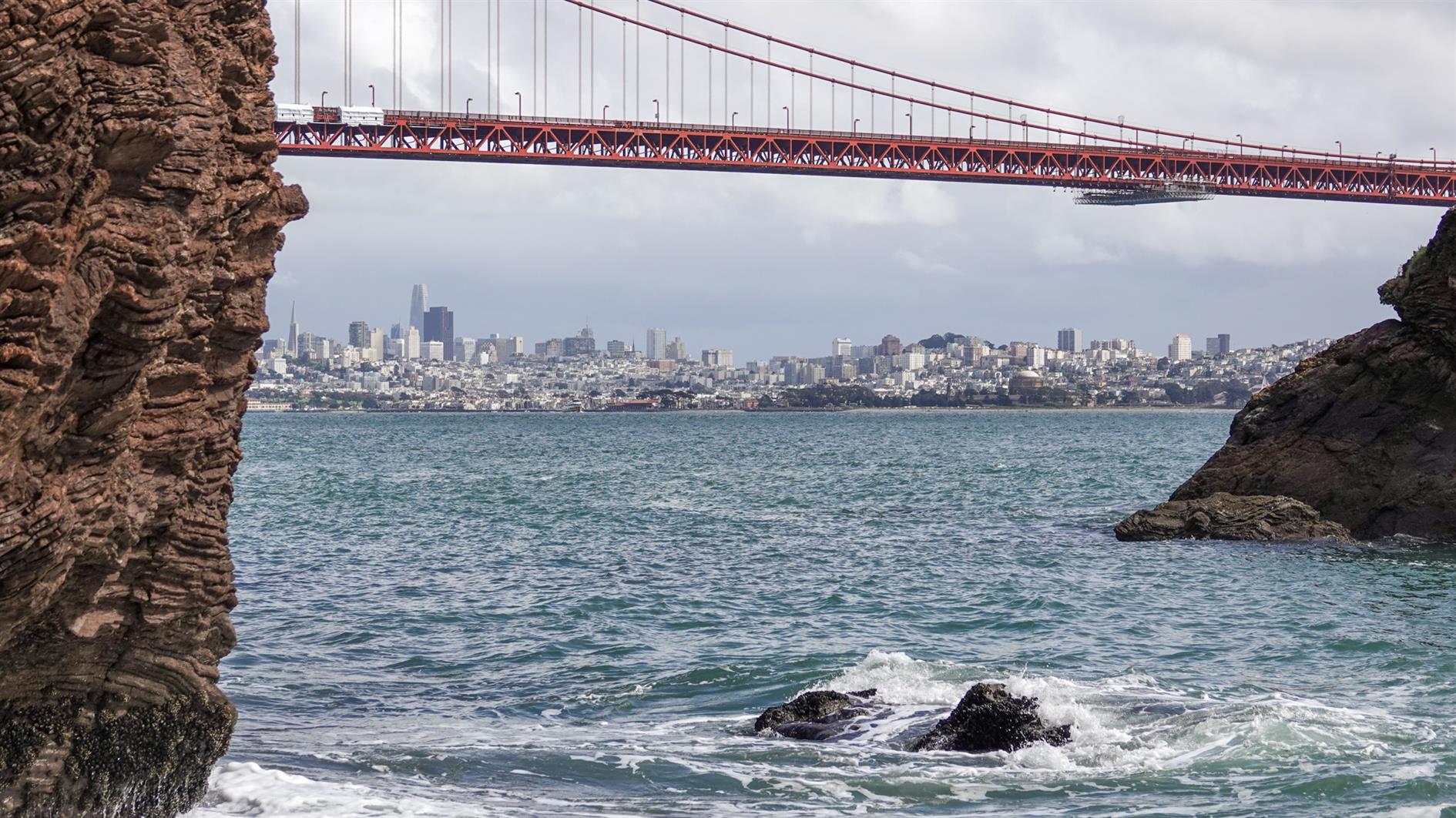 The walk is my least favorite profile, downhill to start and uphill on the way back and also not a loop. It's worth it though because it's short and Kirby Cove beach is quiet and has wonderful views of San Francisco through the Golden Gate Bridge. You can also visit Battery Wagner and Battery Kirby on the way back up.