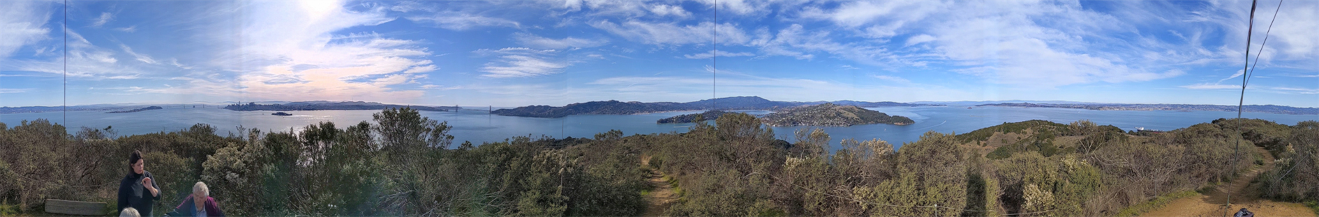 The Immigration Station at Angel Island is a fascinating piece of history. It's amazing how unwelcoming we were to Chinese immigrants while the station was in operation, and how ineffective all of the unpleasantness was. It's a racist mirror universe of Ellis Island. Get a guided tour if you can. I've visited the Immigration Station a couple of times and also hiked around the perimeter (which is spectacular), but this trip was the first time going up to the top. The Angel Island Company site suggests that this is a 6.5 mile hike but my GPS thinks it was 5 miles and so did the fact that we made it back in time for our planned ferry back to San Francisco.