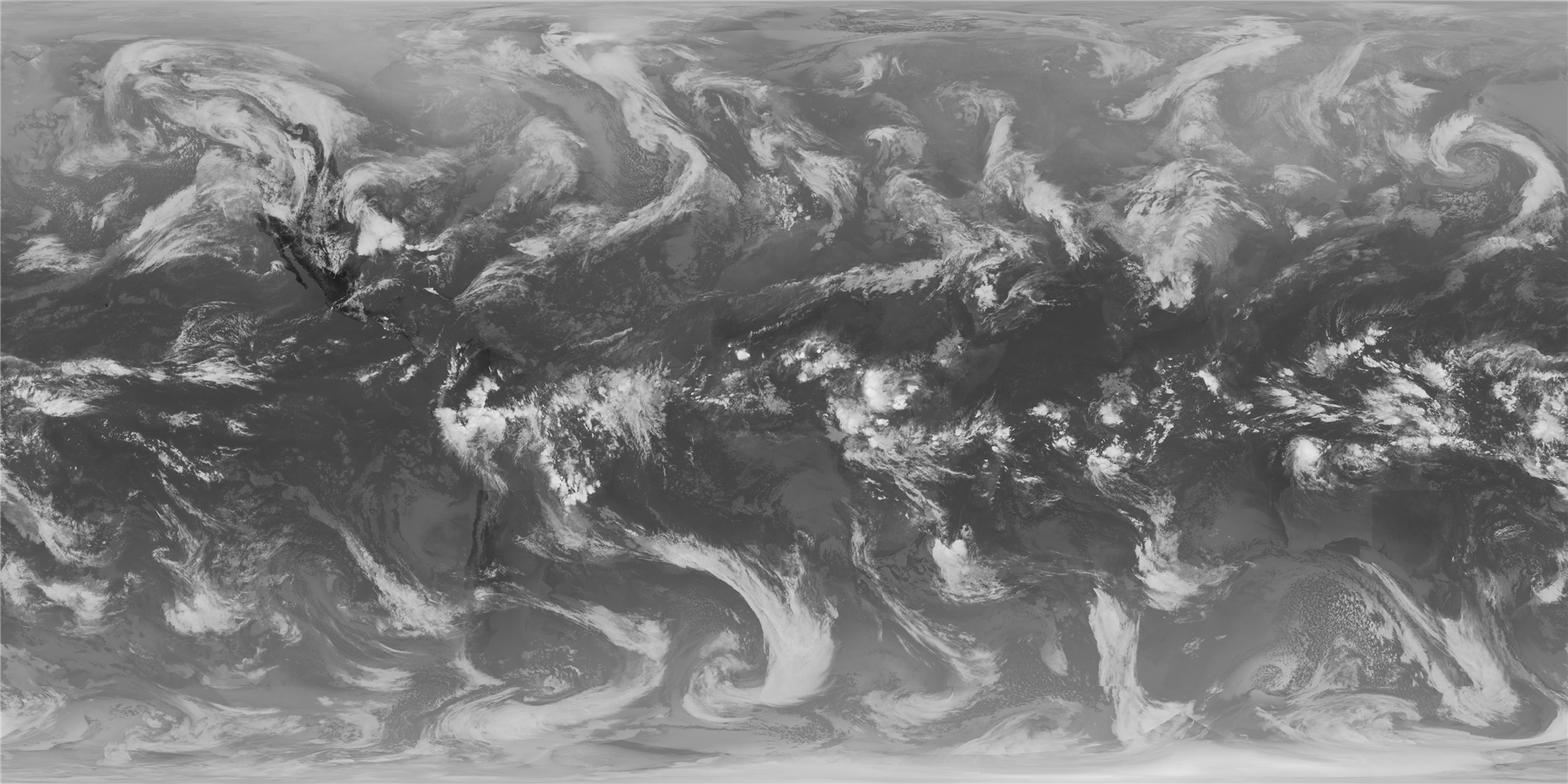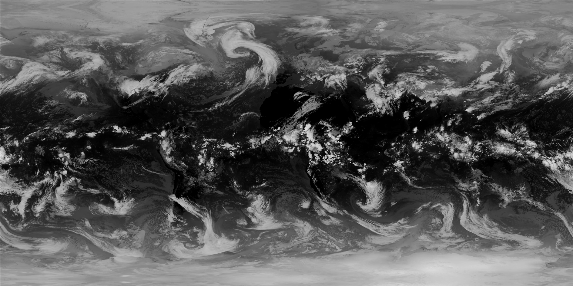 The last problem is that the Mercator image doesn't reach all the way to the poles. In this case there is no alternative but to invent some data and so I flip the top and bottom 50 pixels to cover the gap. You can see this if you look carefully but as this region is rendered over ice in Catfood Earth it won't make a difference in practice (and the old image used this trick as well for a greater proportion of the clouds).
